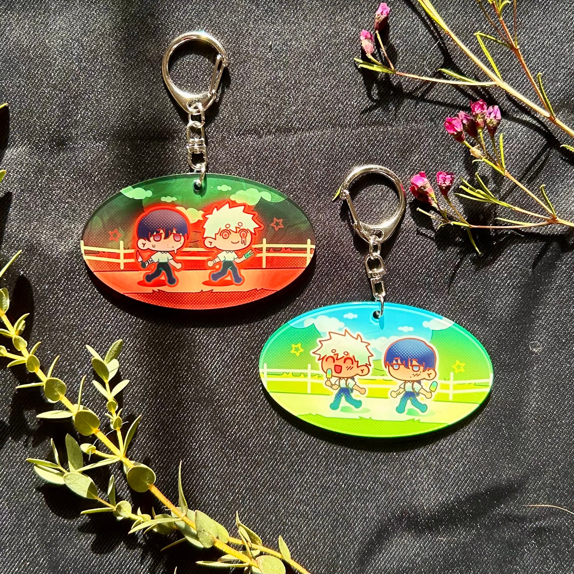 hikaru & yoshiki acrylic charm with a double-sided design! all acrylic products will have a plastic film on each side, be sure to peel this layer to see the design more clearly.