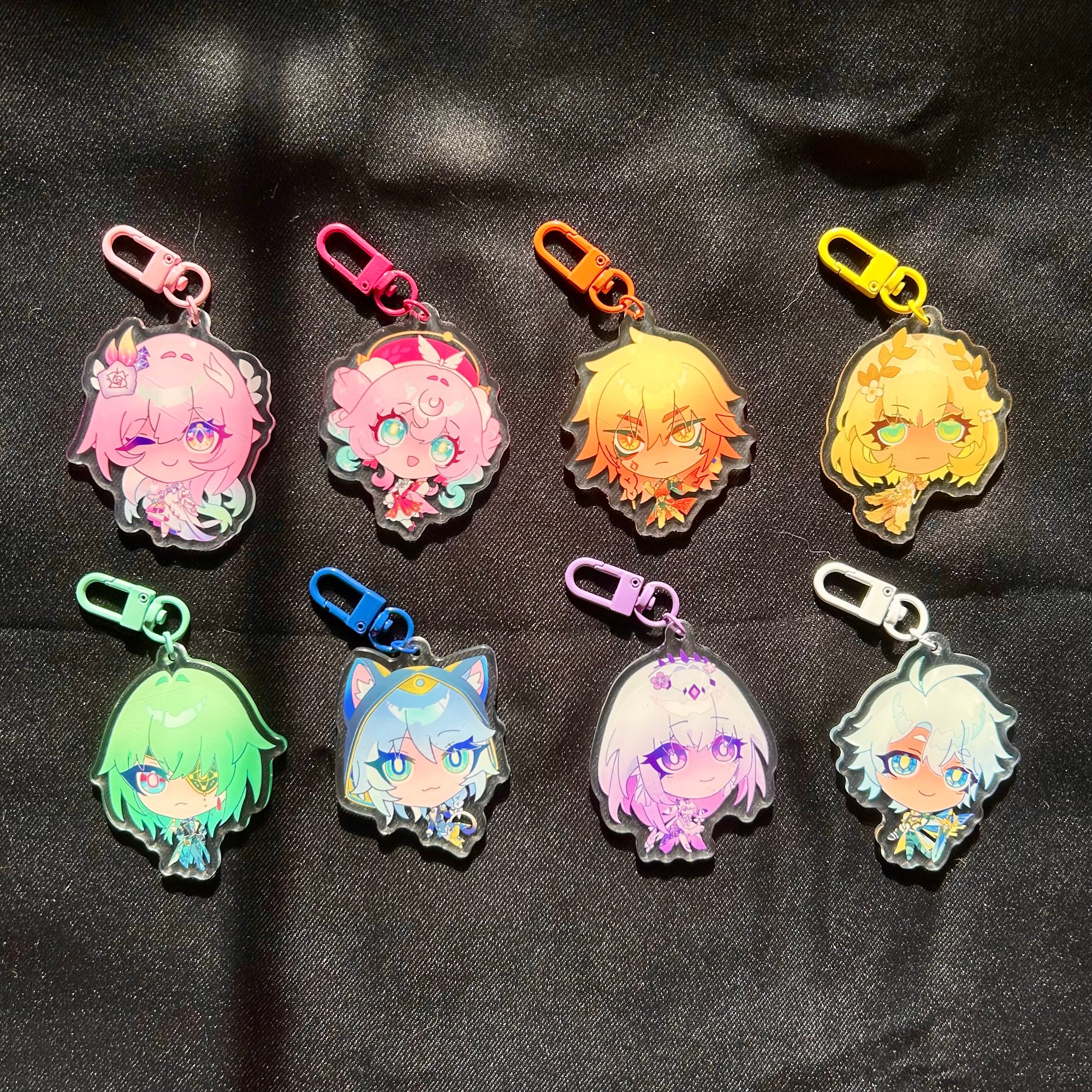 hsr character charms! all acrylic products will have a plastic film on each side, be sure to peel this layer to see the design more clearly.